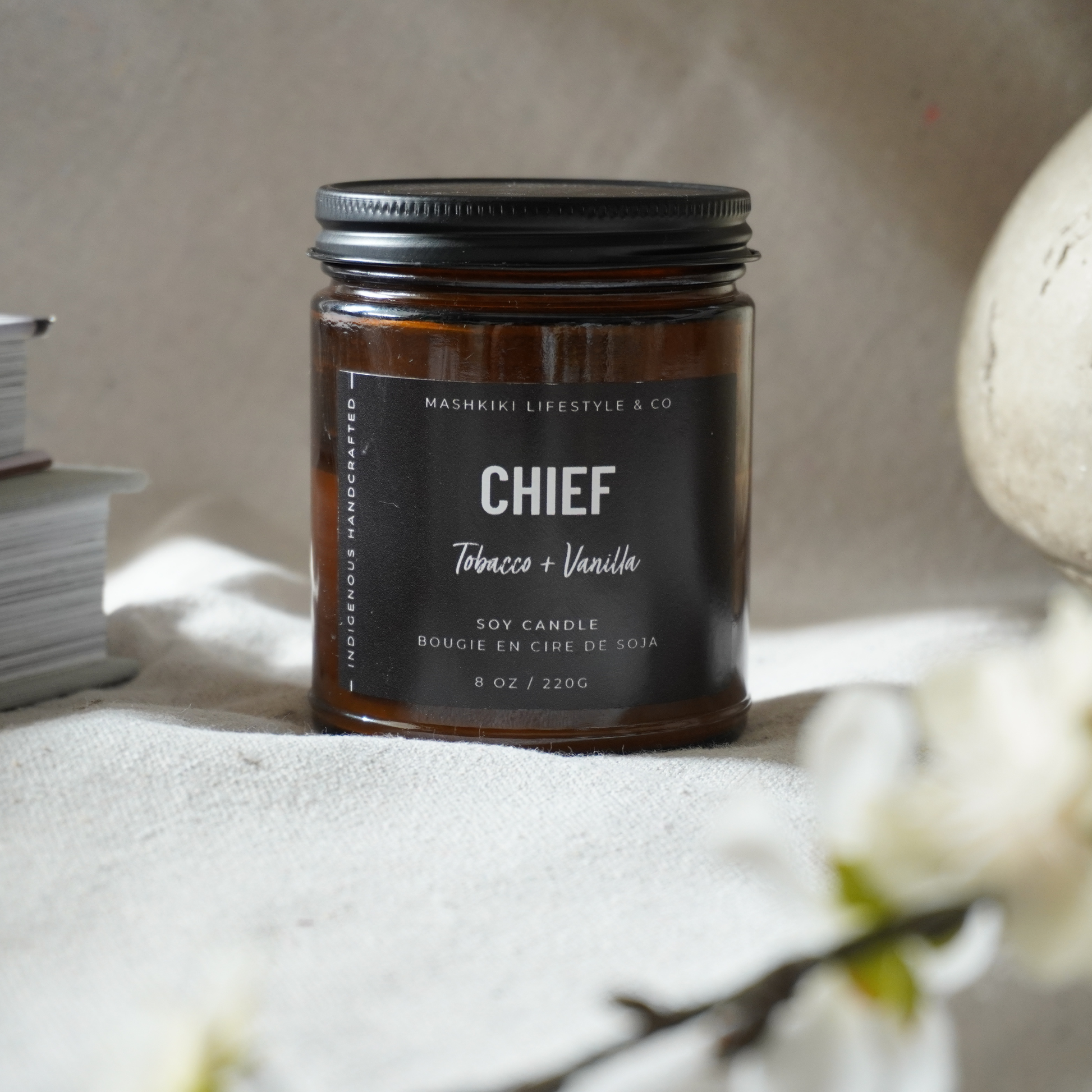 A 5.8 Oz Maison Margiela candle retails at $91 Canadian, so do with that information what you will. Personally, I’d way rather shop at a Canadian and Indigenous woman owned business and for a fraction of the price. The quality and branding of the Chief candle is stunning too; I love the beautiful brown toned glass, plus the fact that this candle is long lasting and made from high grade ingredients. I’m so pleased with this purchase and I’ll definitely be back the next time I need a candle!